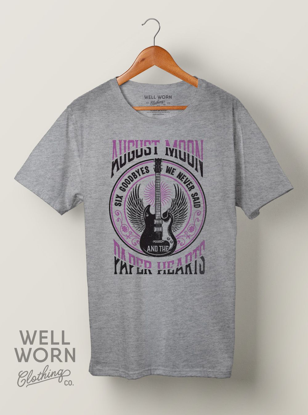 Straight from the pages of Six Goodbyes We Never Said comes August Moon and the Paper Hearts known by their hit single Fire. The band’s tee is printed in color on an Athletic Gray triblend tee that is 50% polyester/25% cotton/25% rayon. For all #sixgoodbyesweneversaid fans, this soft, comfortable tee is for you.